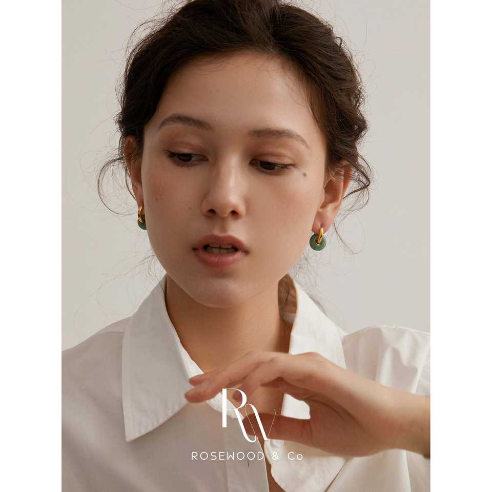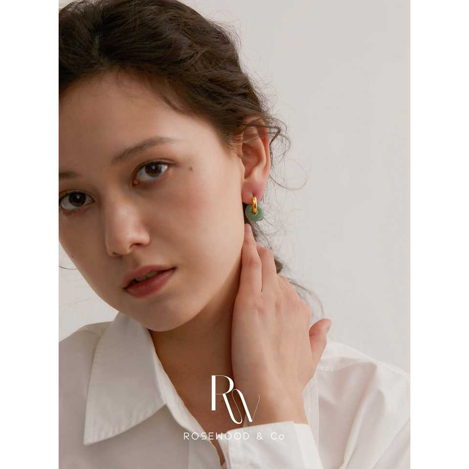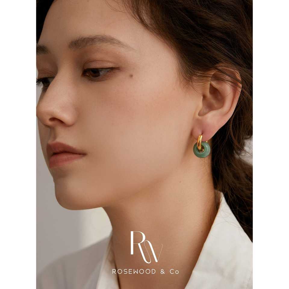 Orecchini Pendenti a Cerchio in Avventurina Verde Placcati Oro, Non si Ossida, con Pietre Turchesi Delicate