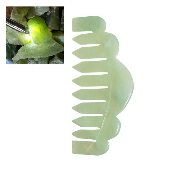 Jade Stone Head Therapy Massager Xiuyan Green Jade Hair Guasha Comb Scalp Head Massager Gua Sha Tool