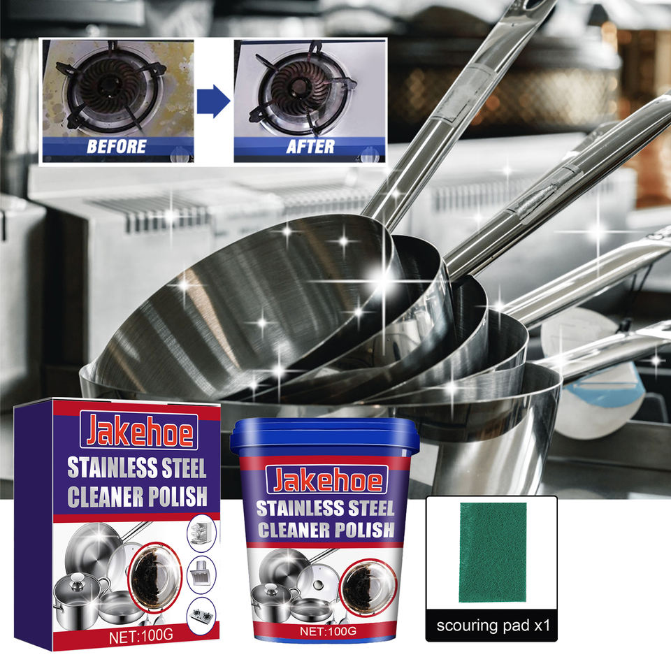 Jakehoe Stainless Steel Cleaner Polish Effective on Kitchen Appliances Like Stove Hood Removes Bottom Pot Black Dirt Stains Rust