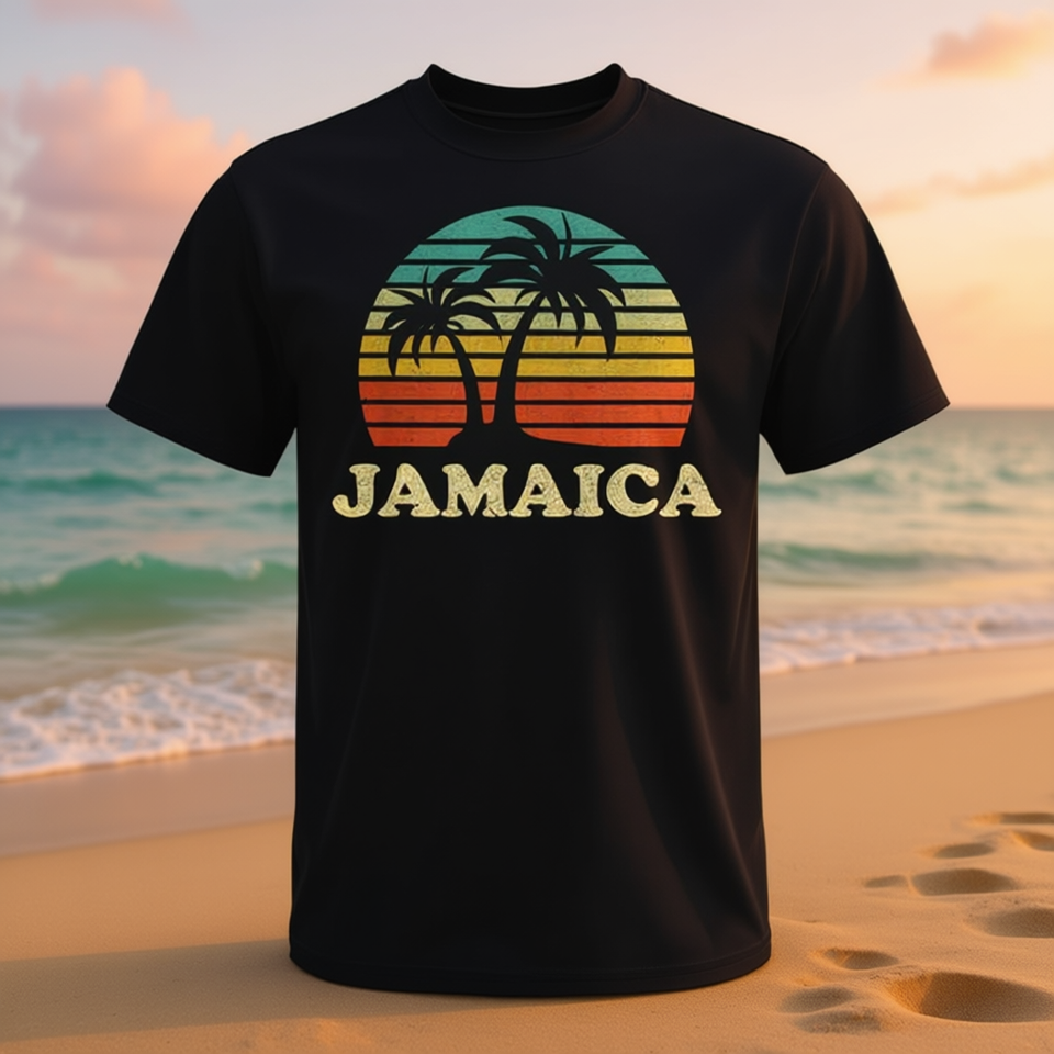 T-Shirt Retro con Palma Giamaicana per Bambini Unisex Manica Corta Girocollo Stampa Serigrafica per Attività Promozionali