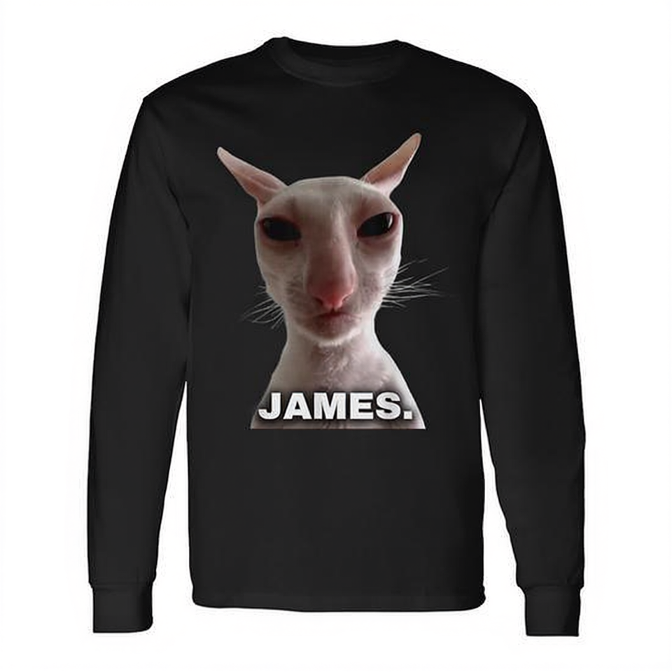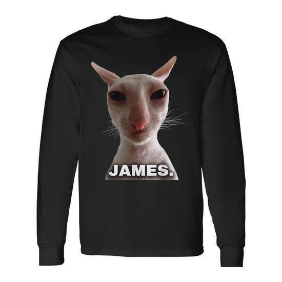 T-shirt a maniche lunghe James Cat con design grafico nero, abbigliamento unisex