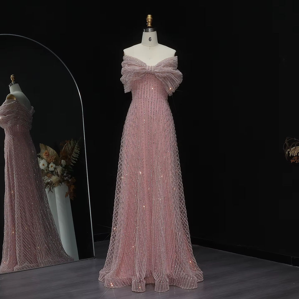Jancember LSZ064 fairy pink Bow Shiny Evening Women's Formal Dresses for Party