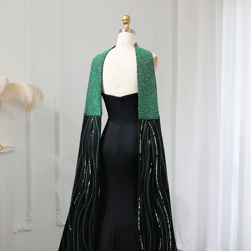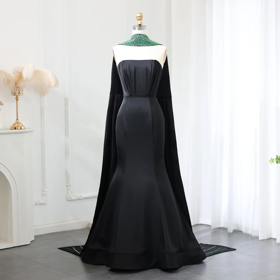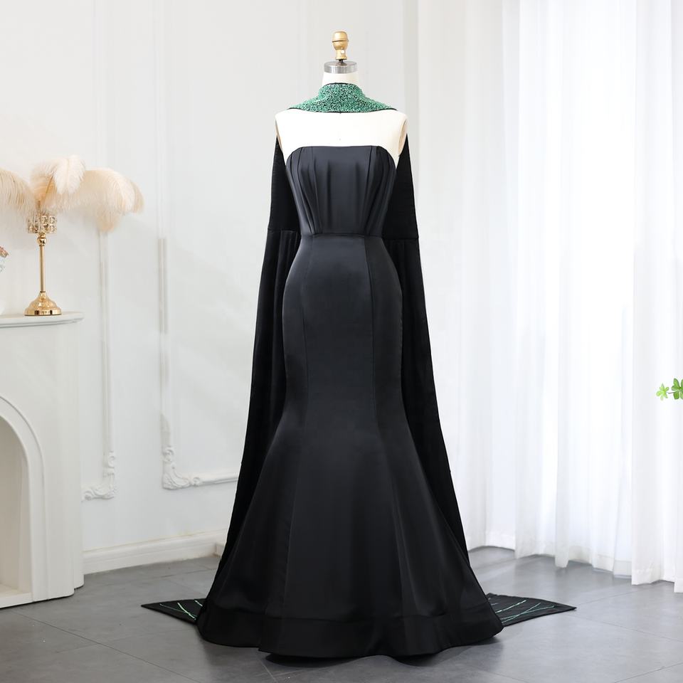 Jancember SZ421 Black Dubai Mermaid Beaded Aravic Women's Evening Party Dresses With Scarf