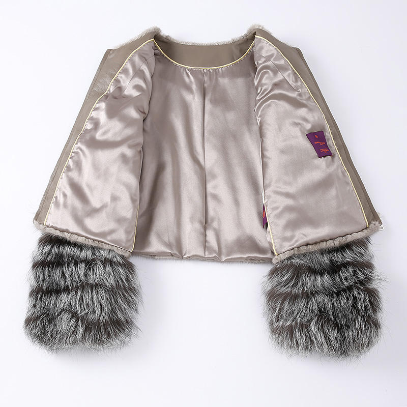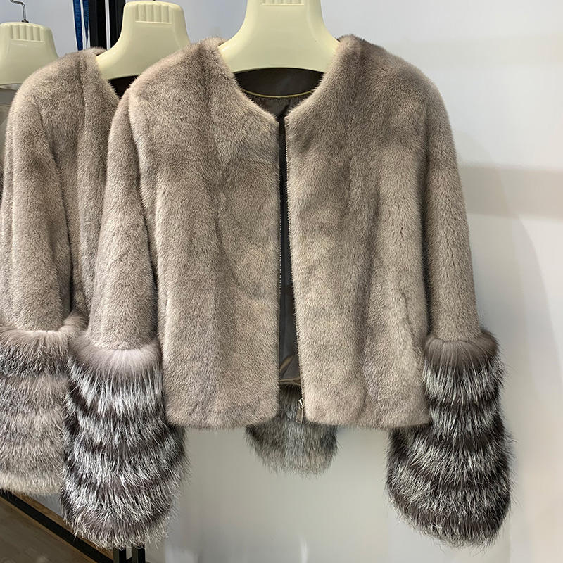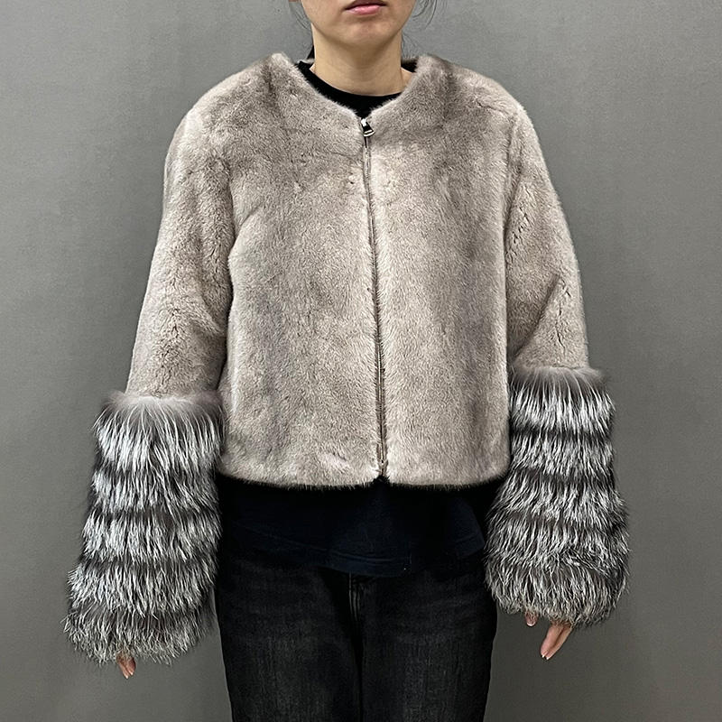 Giacca Corta in Vera Pelliccia di Visone con Collo in Pelliccia di Volpe Jancoco Luxury Winter