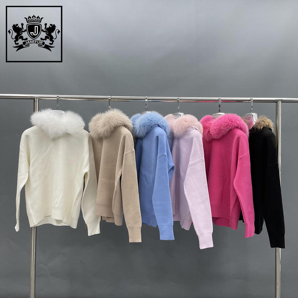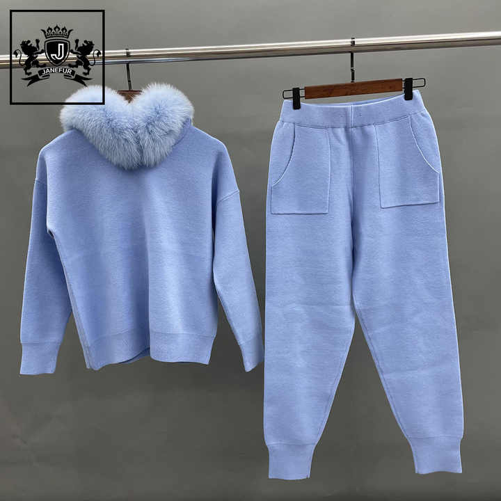 Maglione e pantaloni in lana con collo di volpe e pantaloni caldi Pullover in pelliccia da donna
