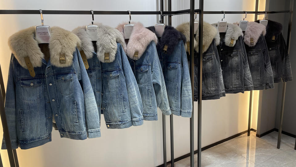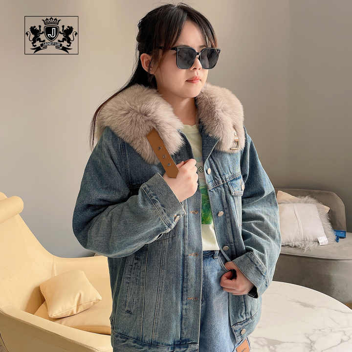Janefur Winter Warm Real Fur Parka Fashion Blue Gray Denim Coat Thick Real fox Fur Collar Rabbit Fur Lined Jean Parka
