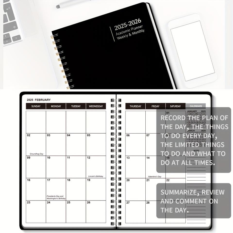 January 2025 - December 2026 Monthly Planning Notebook Academic Weekly Agenda Planning Notebook with Large Writing Blocks
