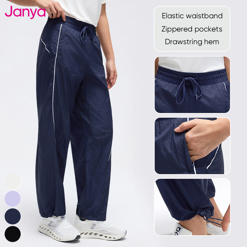 Pantaloni Sportivi Janya con Blocchi di Colore, Vita Elastica con Coulisse, Traspiranti, Gamba Dritta, Larghi e Casual per Donne