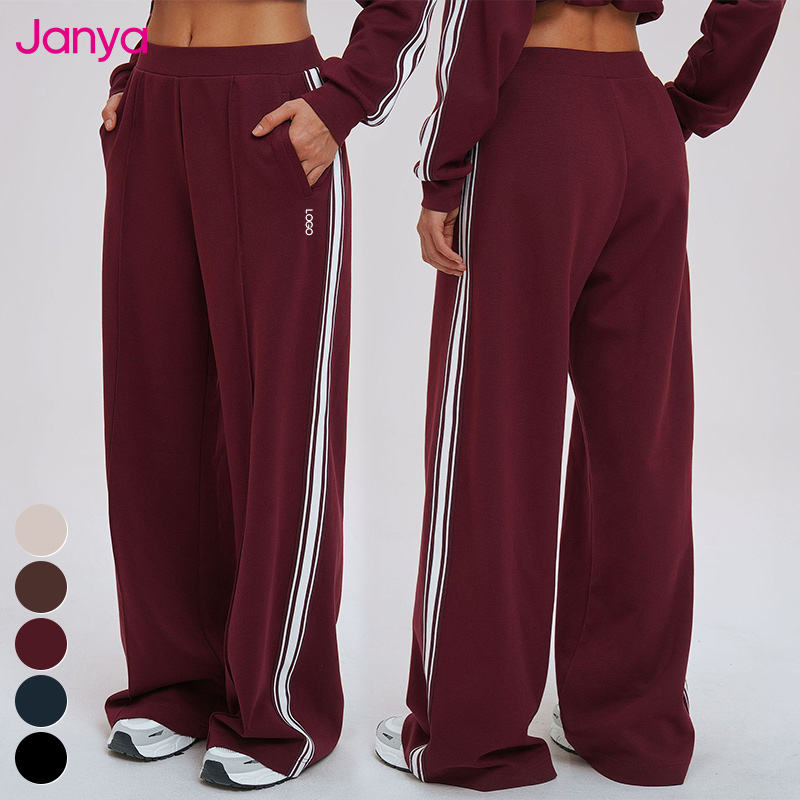 Janya Custom Women Clothing Casual Sweatpants Loose Side Pockets Straight Wide Leg Elastic Waist Fitness Sports Breathable Pants