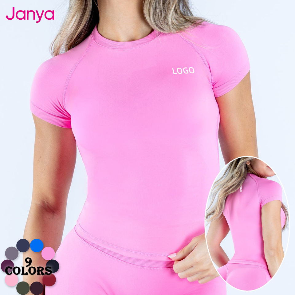 Maglietta Janya Traspirante ad Alta Elasticità, Manica Corta, Aderente, Senza Cuciture, per Fitness e Yoga, da Donna