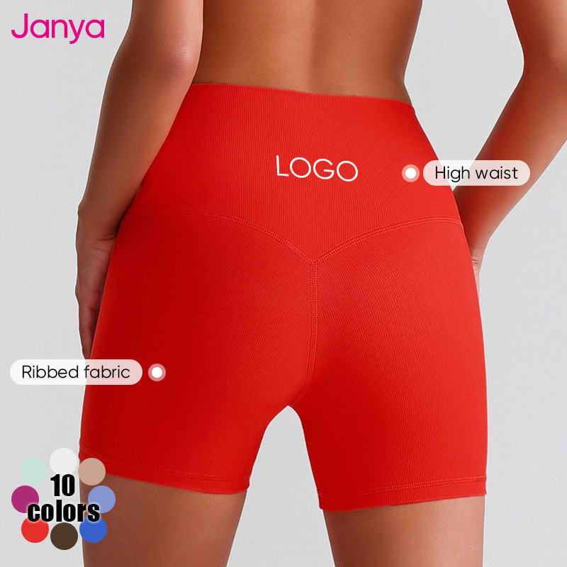Janya New Sports Clothing 2 Piece Suit Breathable Women's Gym Fitness Tops Sets Quick Dry Ribbed High Waist Yoga Shorts Set