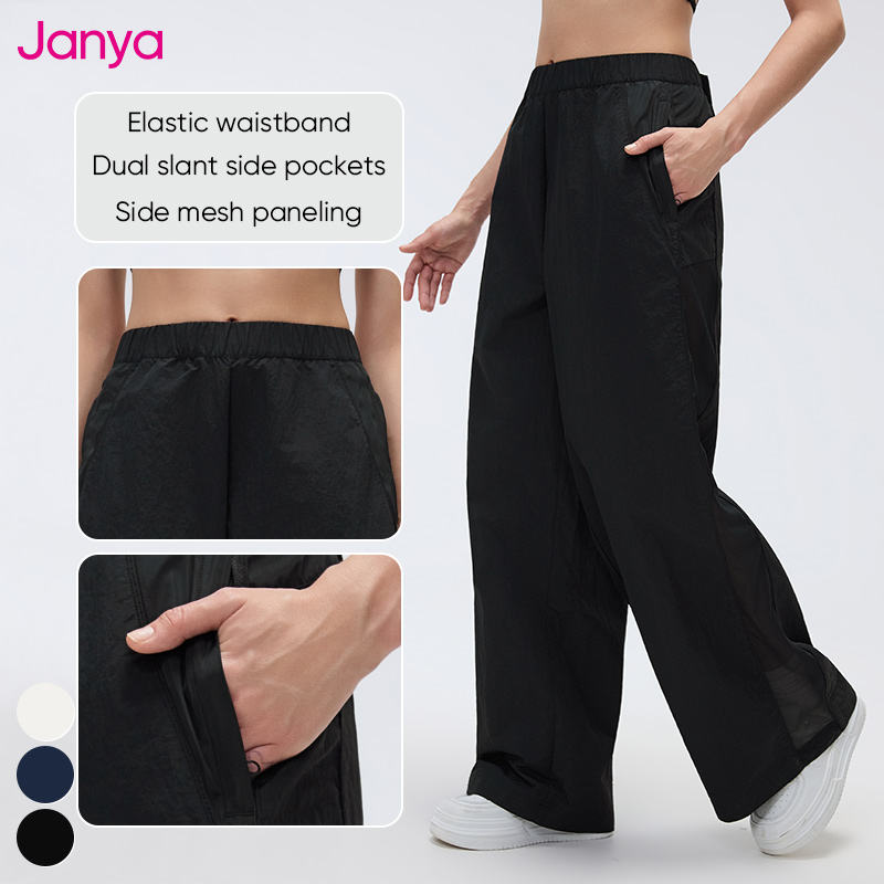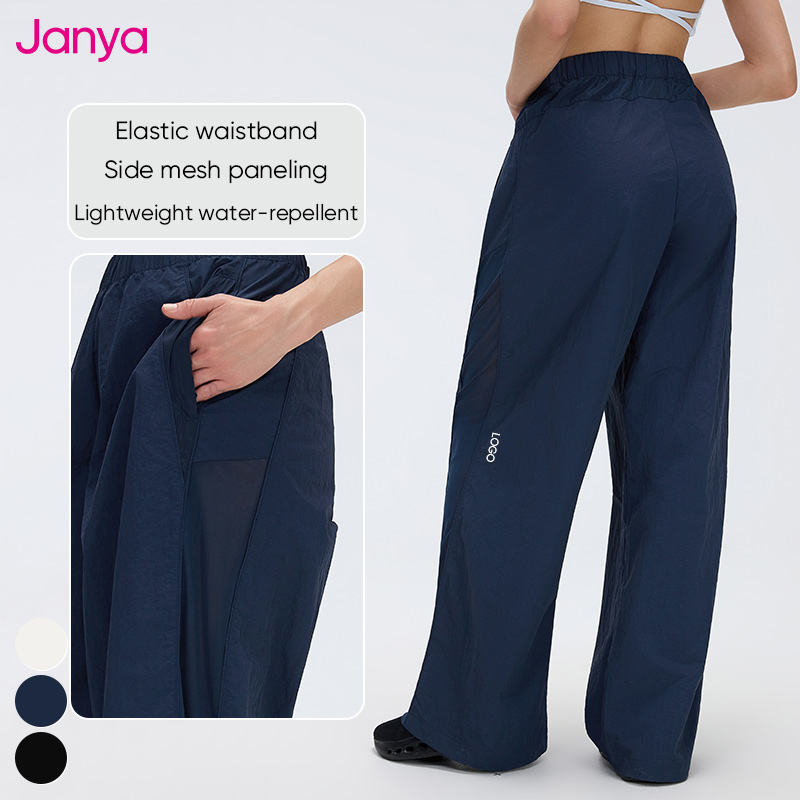 Pantaloni Sportivi Janya a Gamba Larga con Inserti in Rete, Asciugatura Rapida, Traspiranti, Vita Alta in Nylon per Donna