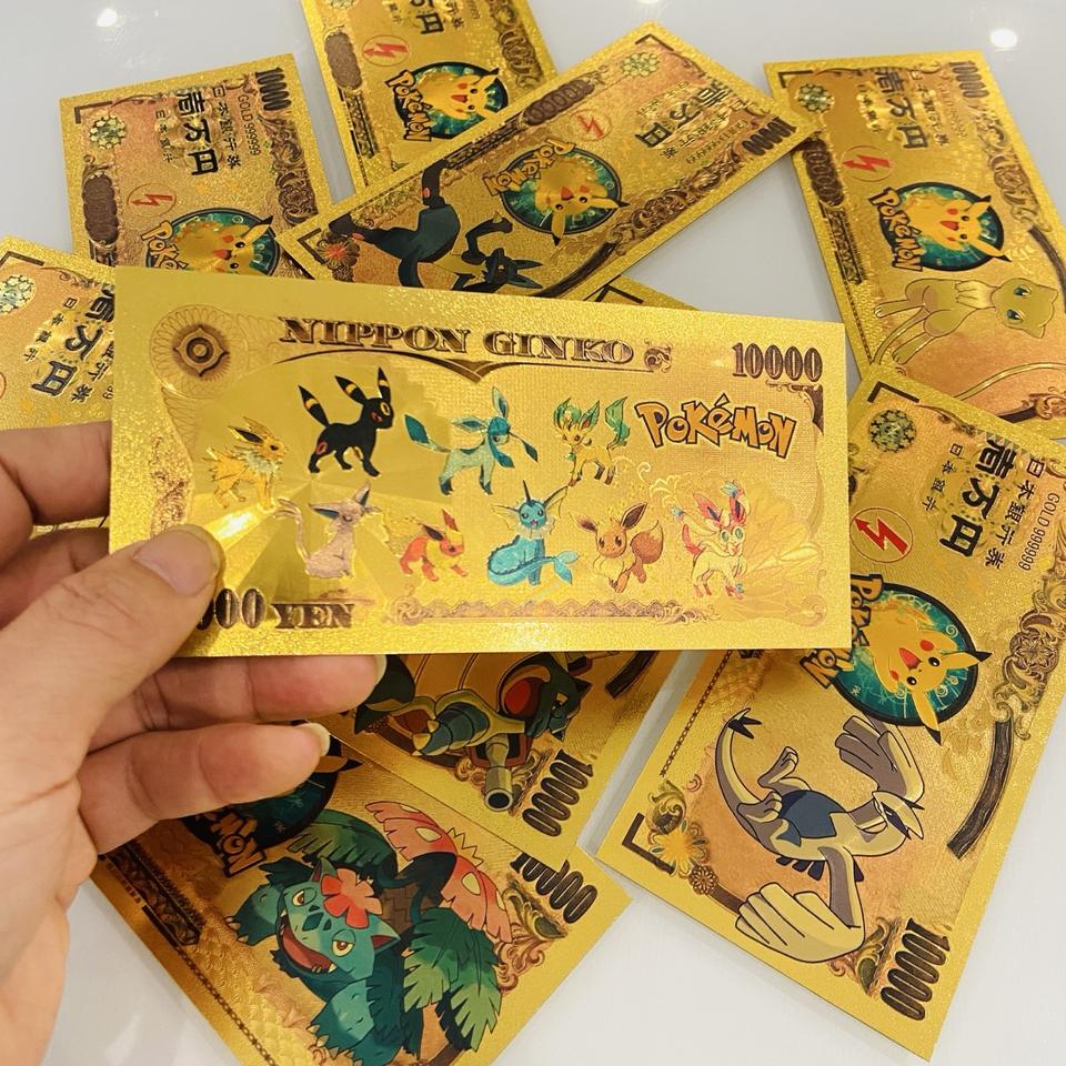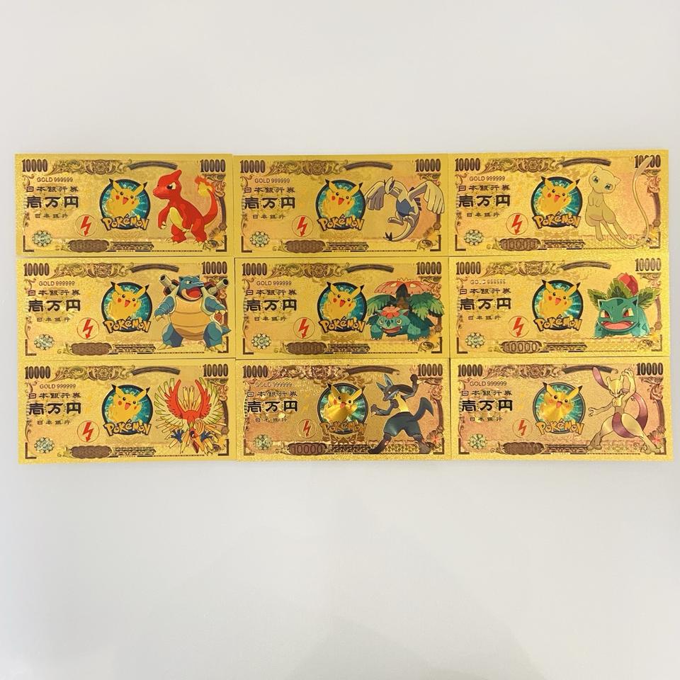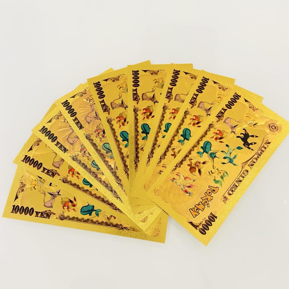 Japan Anime Pokemoned 10000 Yen Gold Foil Plated Banknote Pikachued Tickets Game Pokemoned Toys Cards for Gift