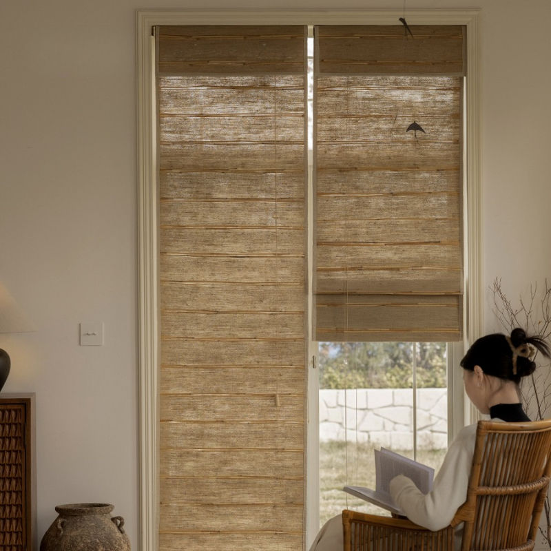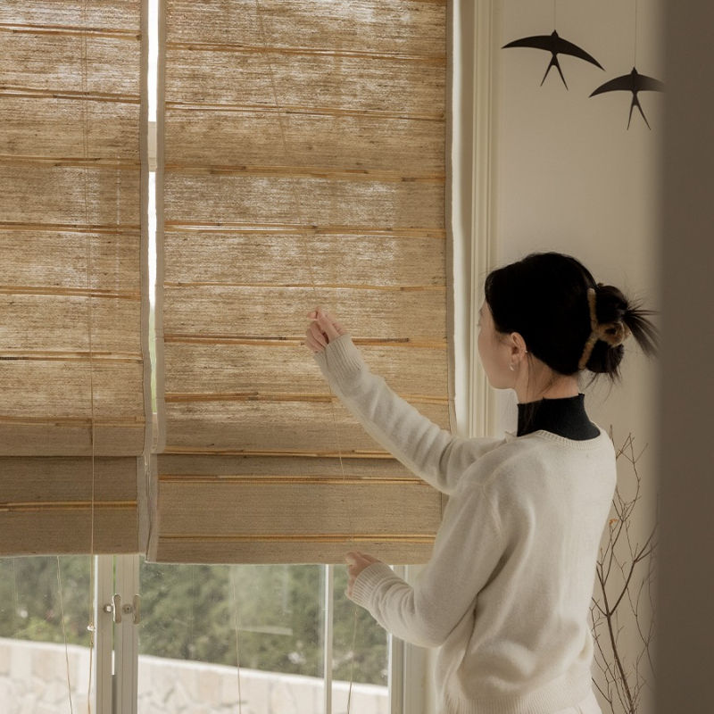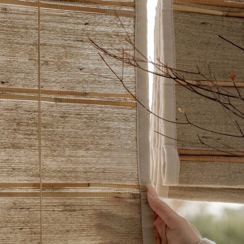 Tende in Stile Giapponese-Cinese in Canna Naturale e Lino - Tende a Rullo Sollevabili per Sala da Tè, Studio e Finestre Piccole