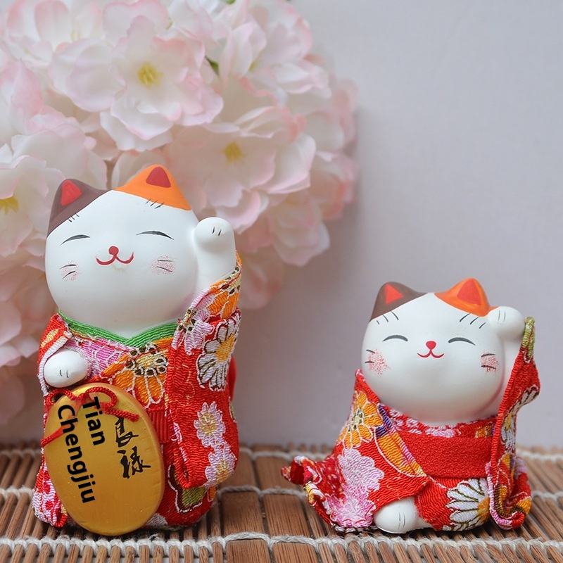 Statuetta di Gatto in Stile Kimono Giapponese Dipinto, Ornamento per Auto, Piccola Dimensione, in Resina Ecologica, per Natale, Creativa, Stile Izakaya