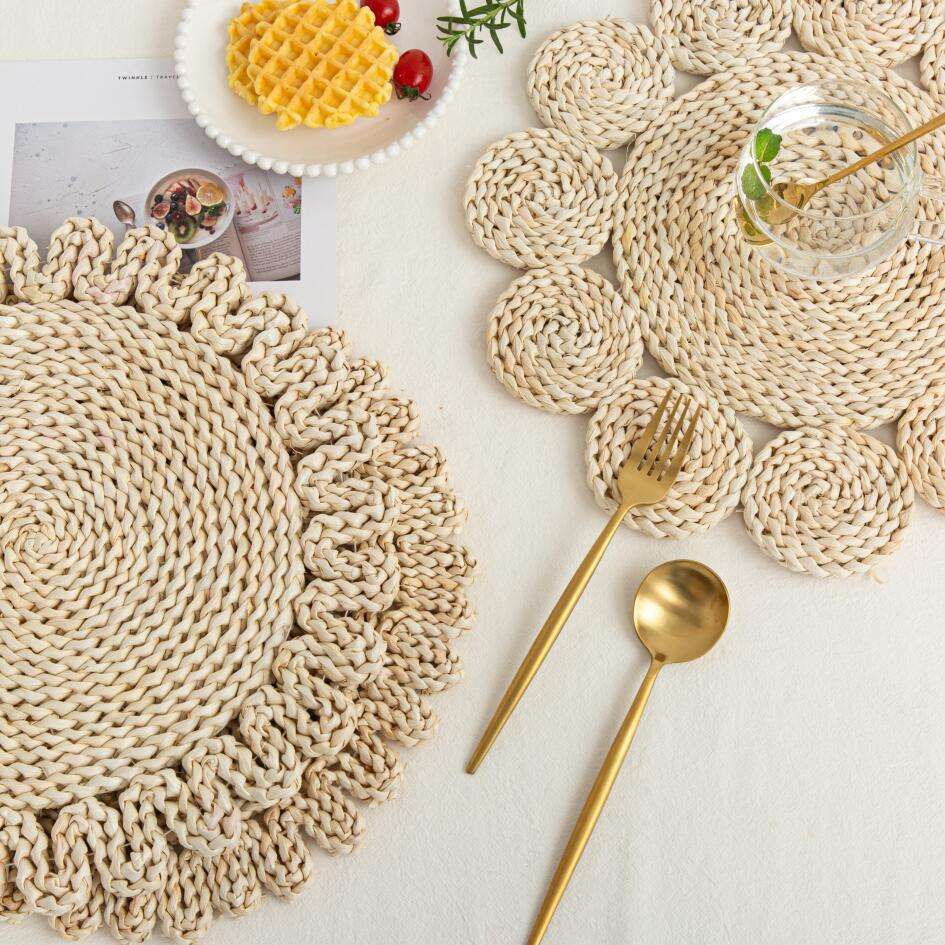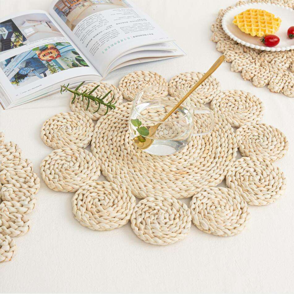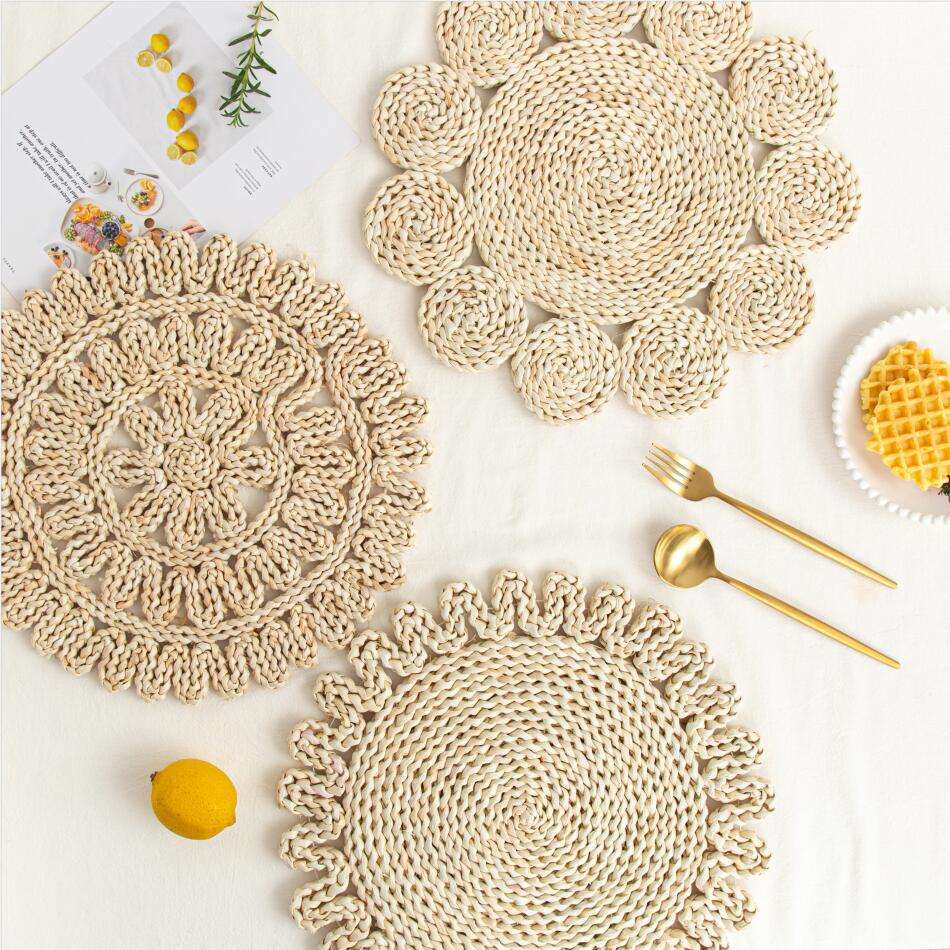 Giapponese fatto a mano Anti-caldo antiscivolo decorativo tavolo da tè tappetino di mais buccia di isolamento con fiore di paglia Design per la cucina di casa