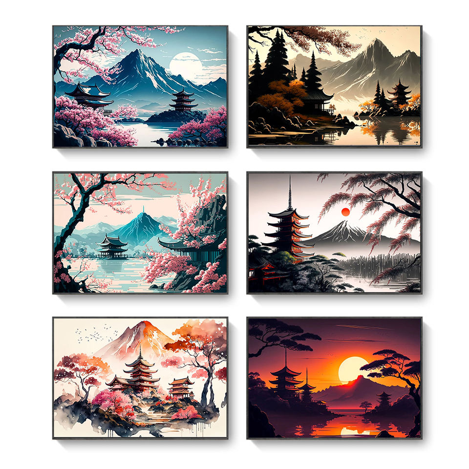 Paesaggio giapponese stampa pittura astratta Wall Art Picture Bar Cafe Vintage Home Room Decor murale estetico