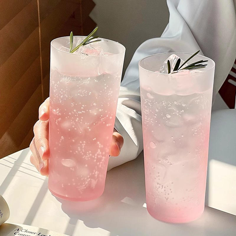 Stile giapponese glassato rosa gradiente tazza di acqua Collins tazze di succo freddo dritto bicchiere per bevande