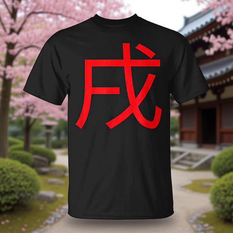 T-shirt con cagnolo dello zodiaco giapponese, design con caratteri rossi, nera, da uomo, girocollo, a maniche corte, abbigliamento promozionale per adulti
