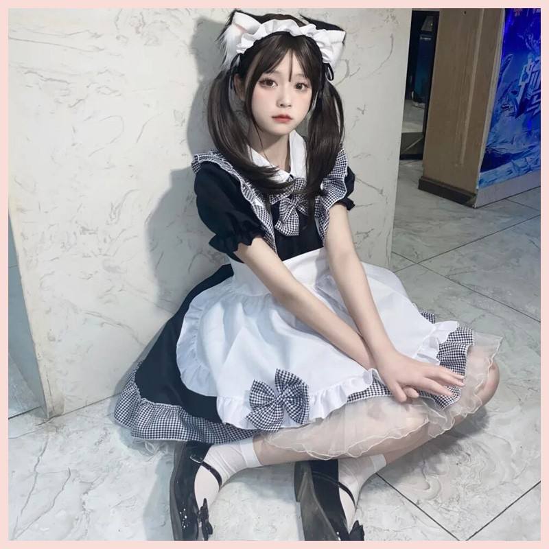 Costume Cosplay Lolita Giapponese per Capo, Abito da Studentessa Carino, Completo da Cameriera, Taglia Grande, Set di Abbigliamento Quotidiano Bidimensionale Anime