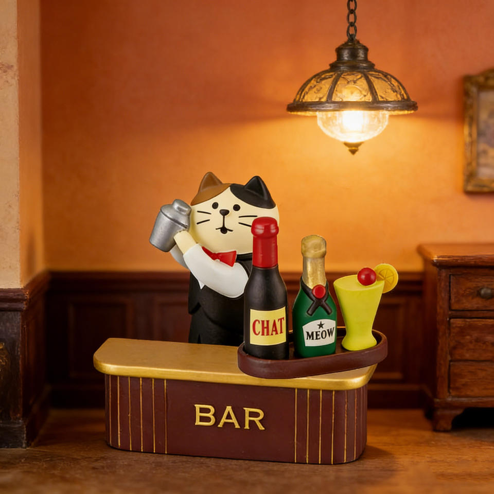 Statuetta da Scrivania Mini Gatto in Stile Giapponese, Decorazione Artigianale Dipinta a Mano, Regalo per Barman, Arredamento Zakka