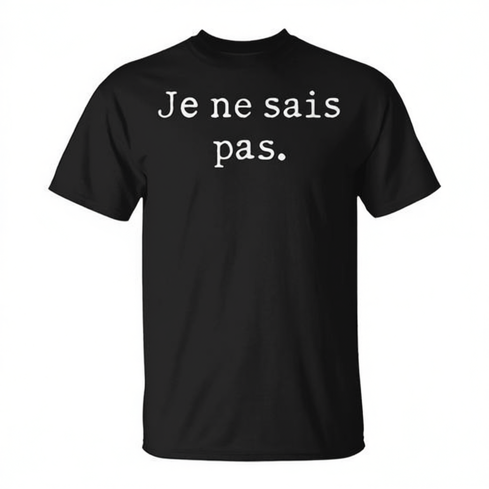 T-shirt nera da uomo con scritta in francese 'Je Ne Sais Pas', abbigliamento casual