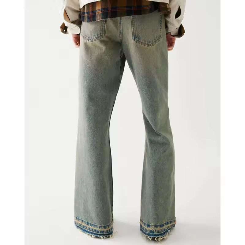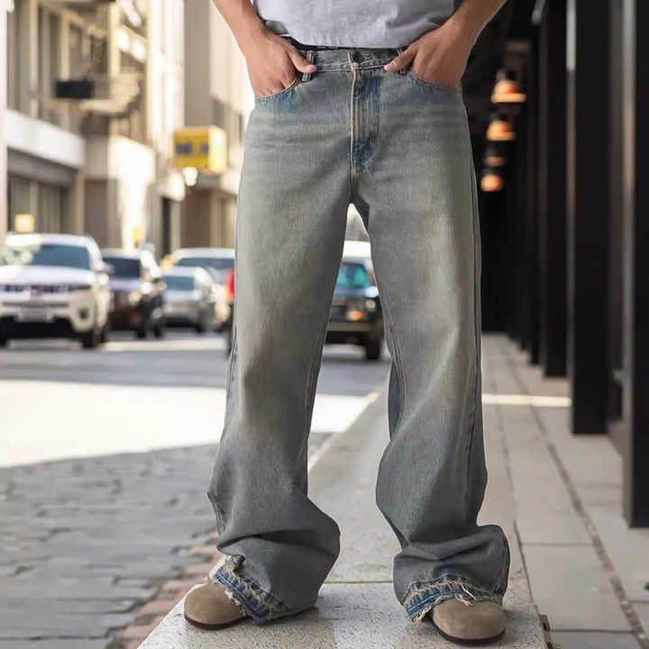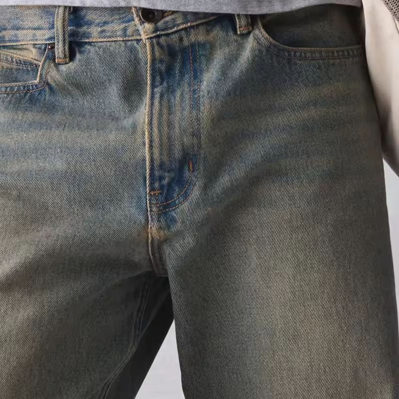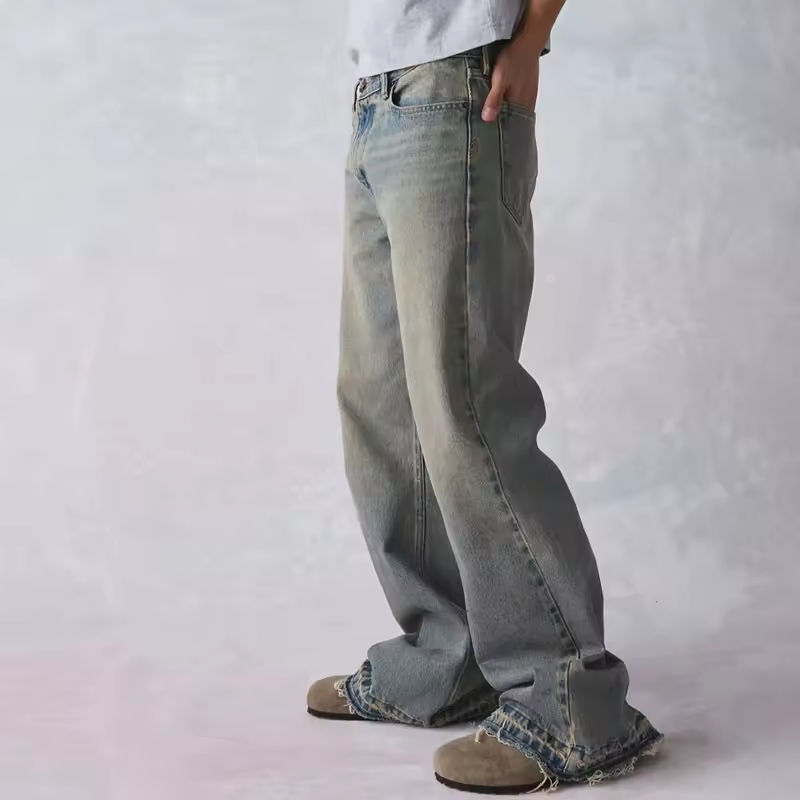 Jeans da Uomo Personalizzati in Denim Dritto con Orlo Sfilacciato, Stile Slacker Rilassato Vintage High Street, Lavati e Stampati