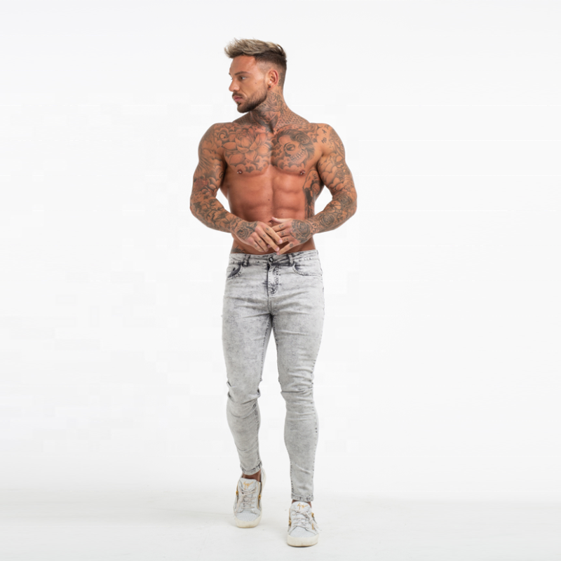 Jeans Mens All'ingrosso Della Fabbrica del Cliente di Marca di Luce di Colore Grigio Super Skinny Elastico Mens Dei Jeans