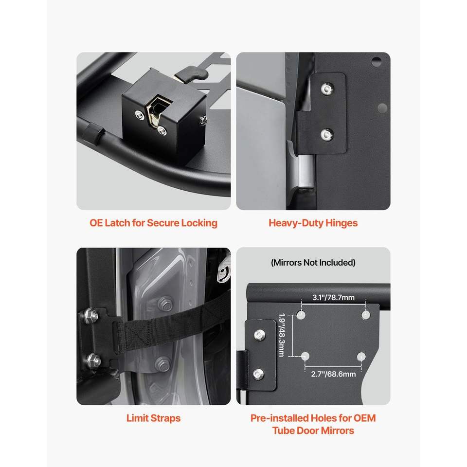 Cerniere per Porte Tubolari Jeep Stile Caccia a 2 Porte, Cerniere Rinforzate, Chiusura OE, Cerniere per Finestrini Porte Tubolari Jeep, Cuscinetti in Gomma per Porte Tubolari Jeep