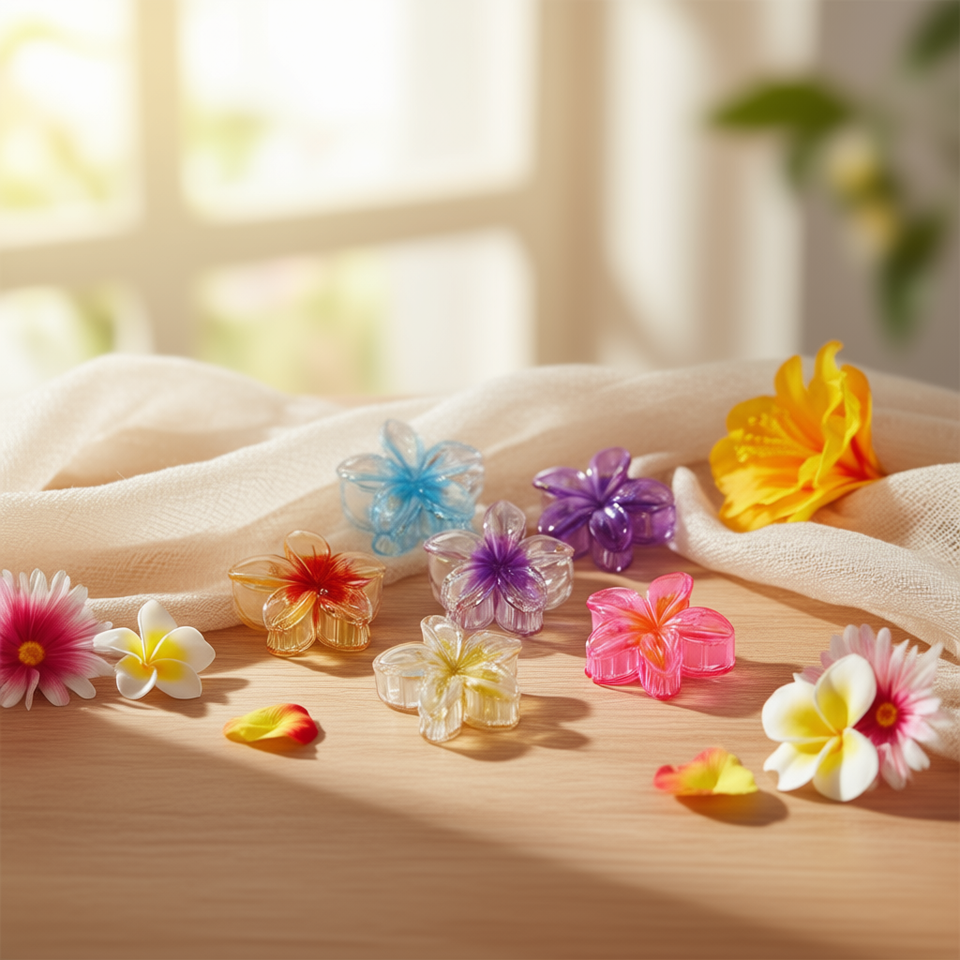 Fermaglio per capelli a forma di fiore di frangipani bicolore in gelatina, 8 cm