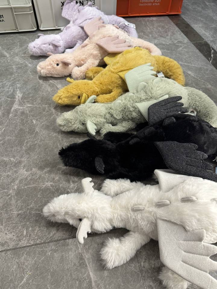 Peluche Drago Jellycat, 13 Stili, Set Completo, Sky Black Fuddlewuddle Bashful, Cuscino Morbido Grande Antistress con Etichette e Sacchetto Antipolvere