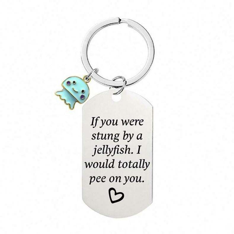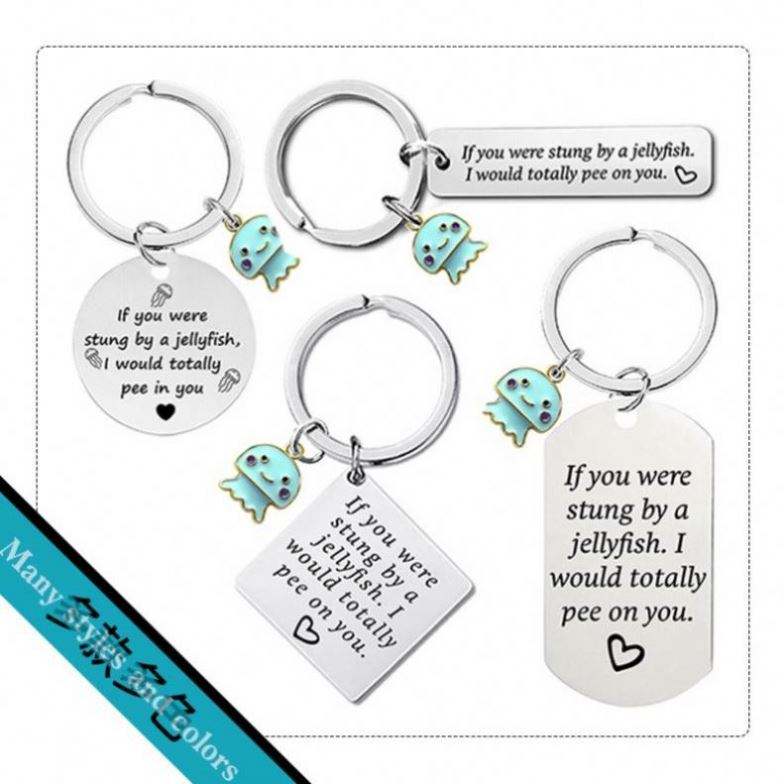Jellyfish Keychain Stainless Steel Keychain Metal Key Chain Gift if You Were Stung by Small Jellyfish I Would Totally Pee on You