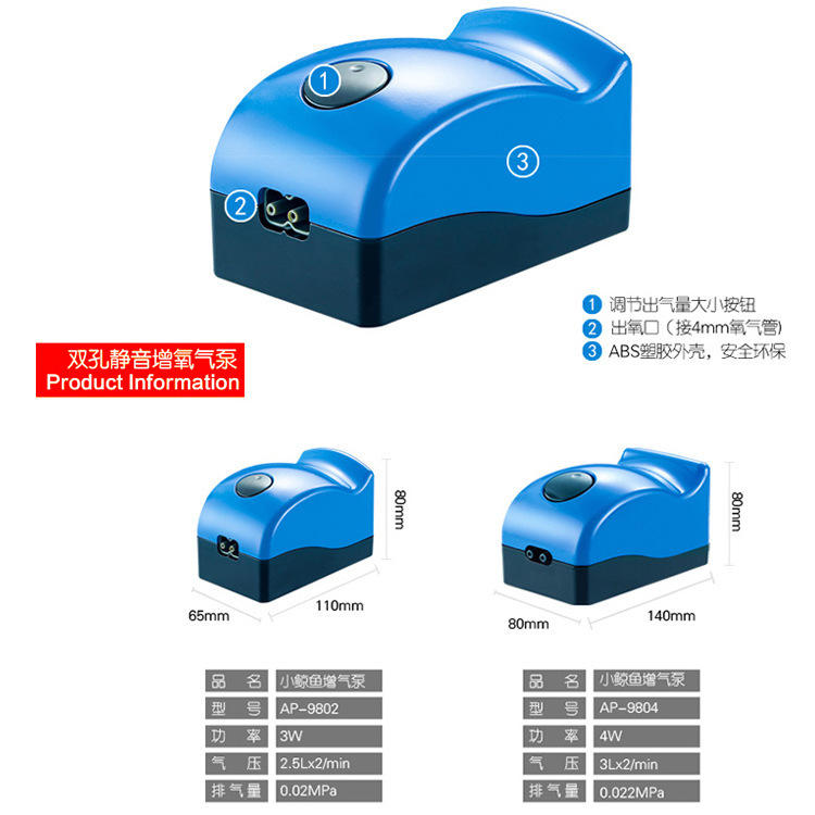 Pompa d'Aria Silenziosa Senza Spazzole Jeneca AP-9803 AP-9804 con Doppia Uscita, Aeratore per Ossigeno, Pompa d'Aria per Acquario, Doppia per Vasche di Pesci