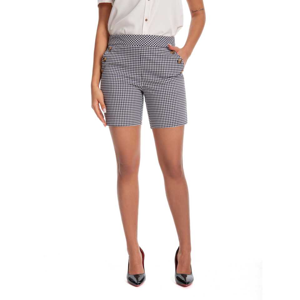 Jenna Rose Casual Summer Cropped Shorts Skirts Buttons Stretchy Spandex/Cotton Oxford Fabric Biker Breathable Checkered Design