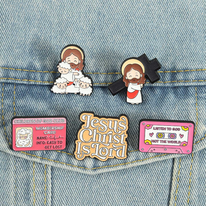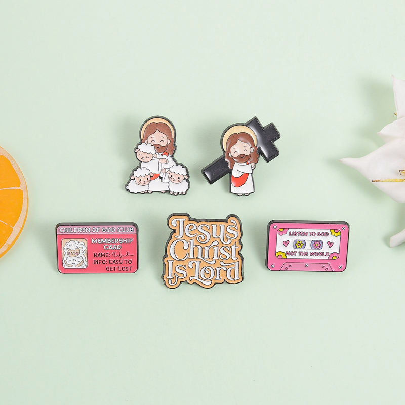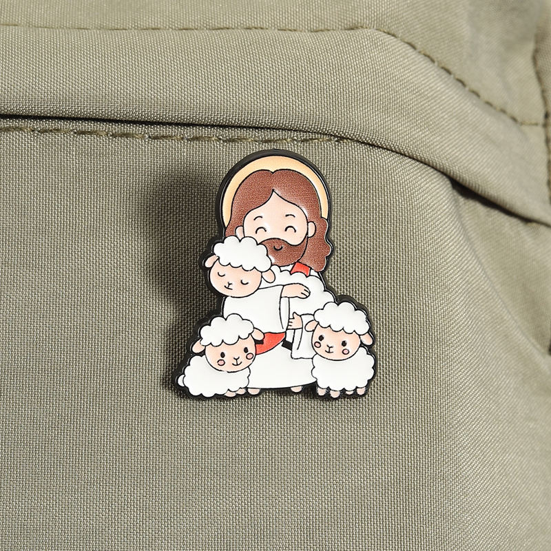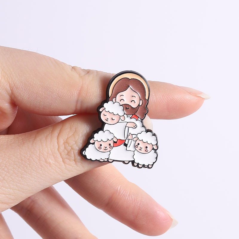 Spille smaltate con tema cristiano di Gesù, Spilla a croce 'Il Signore è il mio pastore', Distintivo da risvolto, Gioielli all'ingrosso