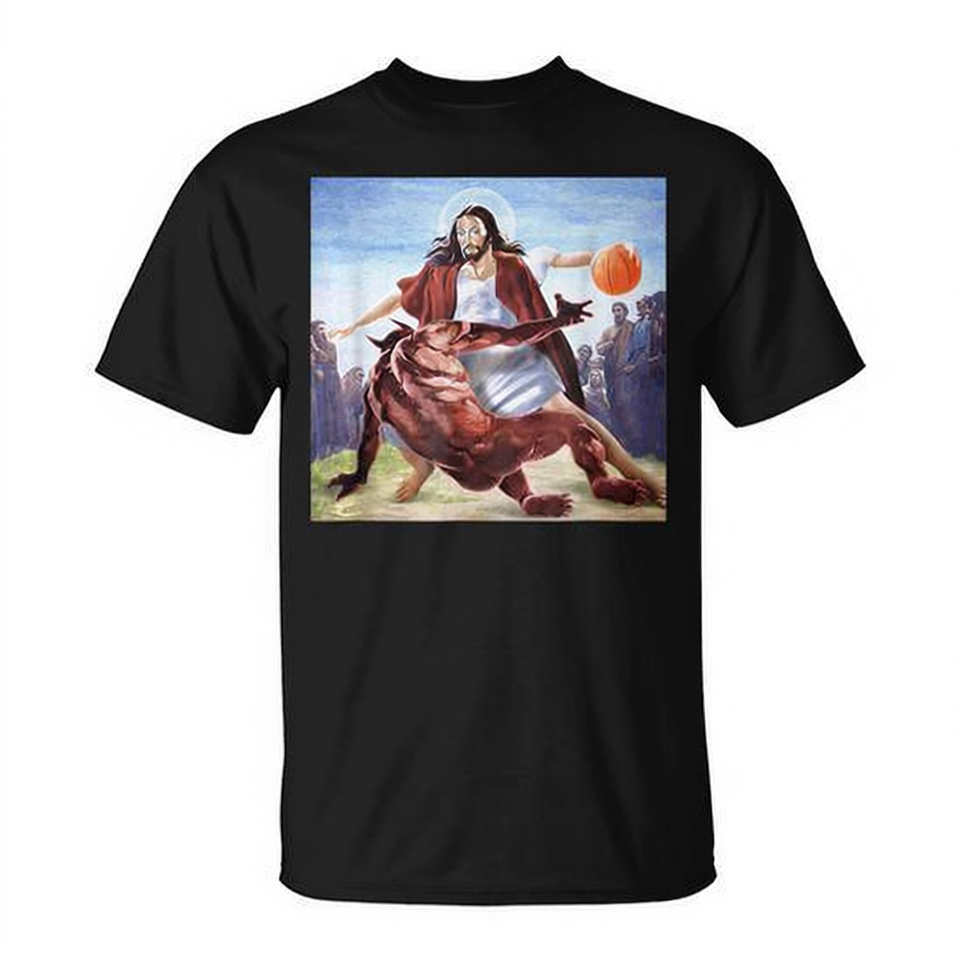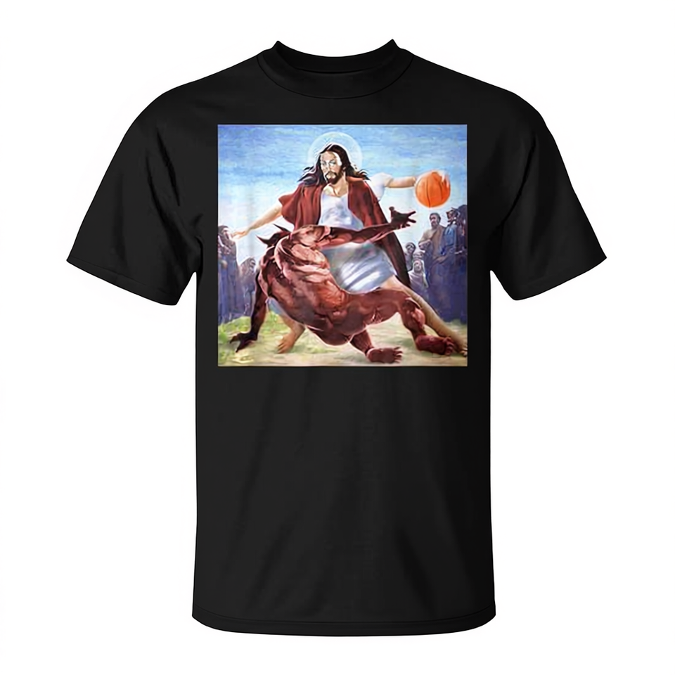 T-Shirt da Donna Cristiana con Stampa Digitale 'Jesus Crossing Up The Devil', Manica Corta, Collo Tondo, Regalo Religioso per la Chiesa