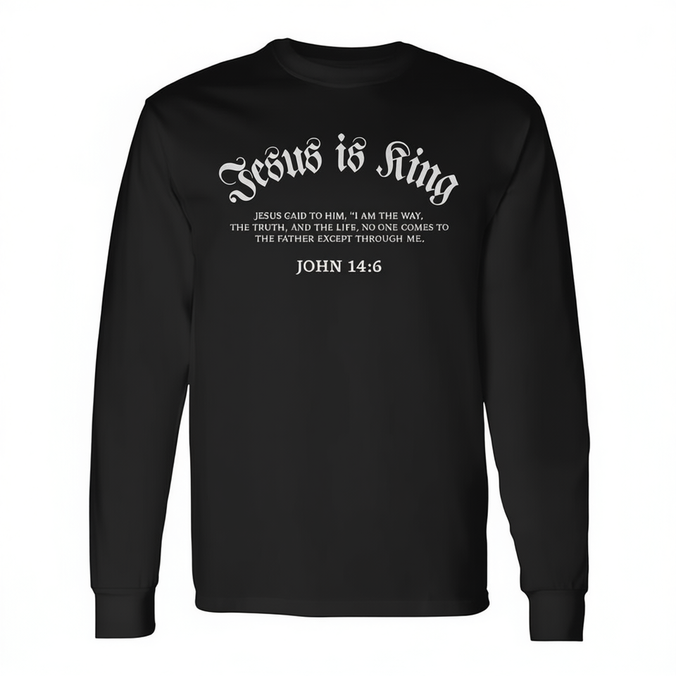 Maglietta a maniche lunghe Jesus Is King con versetto biblico di Giovanni 14:6
