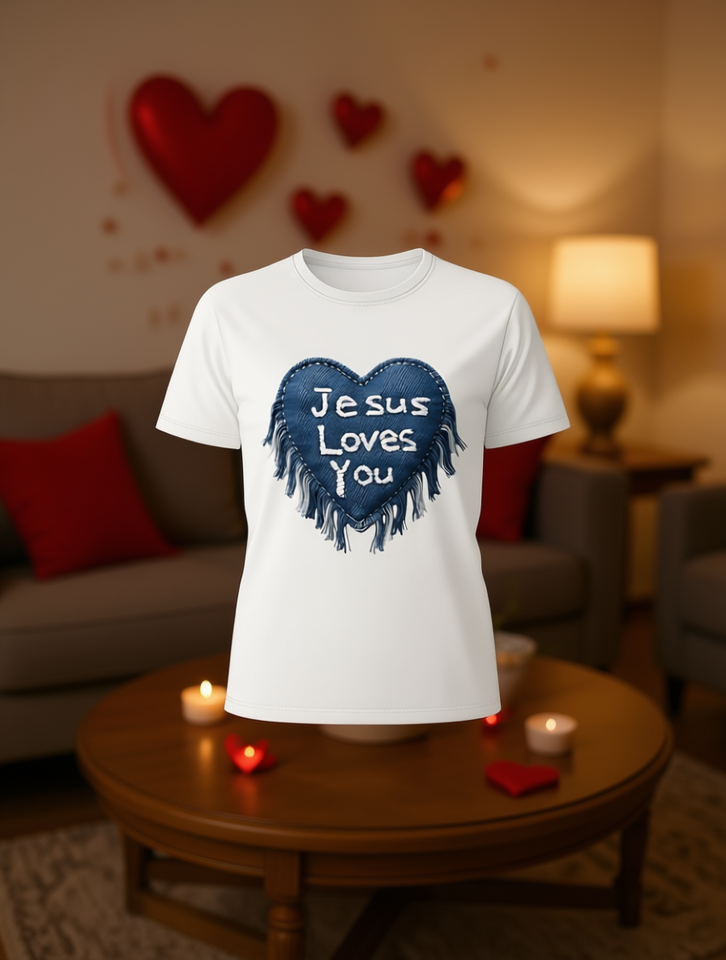 Jesus Loves You Heart T-Shirt Women Short Sleeve Round Neck Casual Valentine's Day Top 100% Cotton Lightweight Breathable