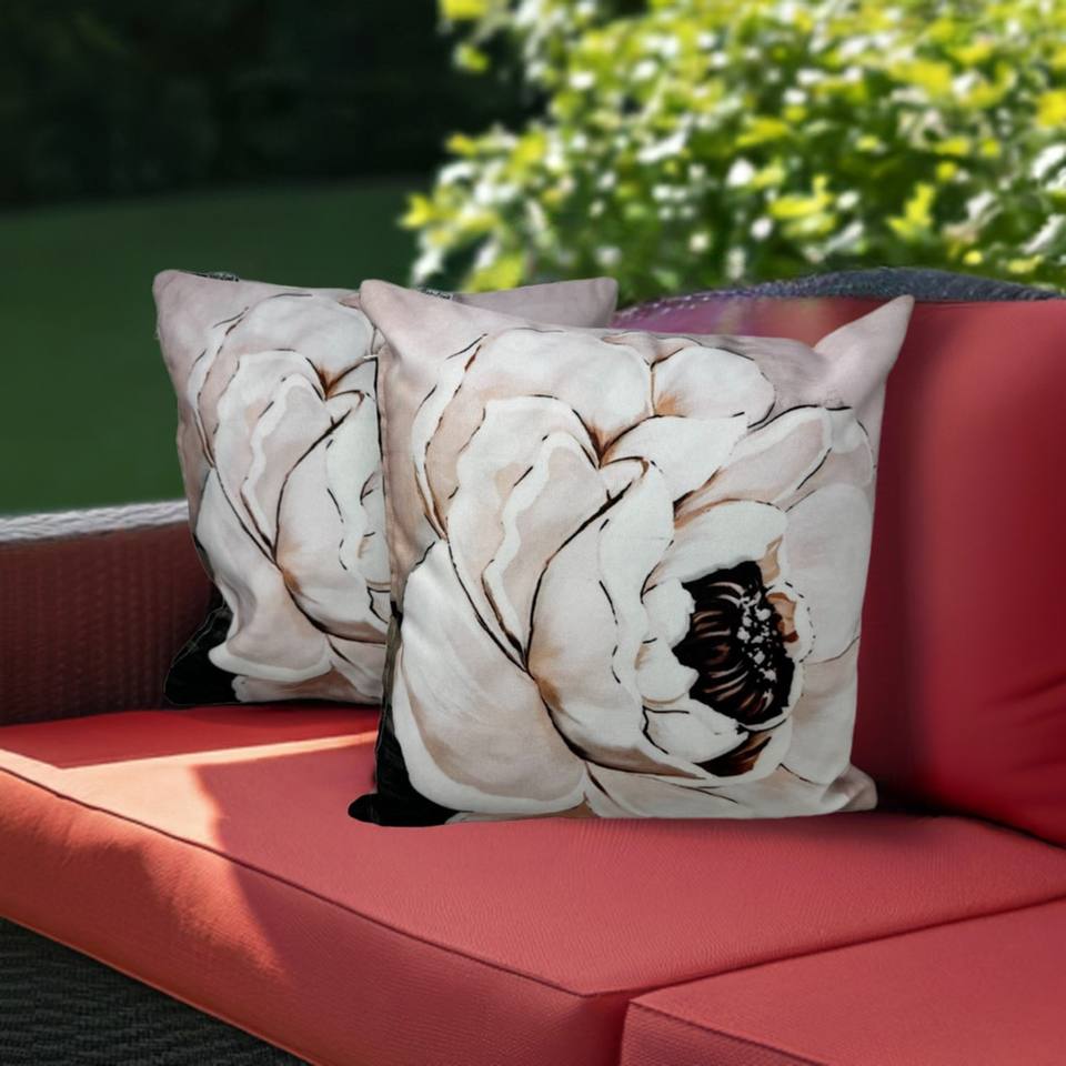 Jet-Line 2-Piece Rose Design Decorative Cushion Set 40x40 cm Indoor & Outdoor Sofa Cushions with Filling