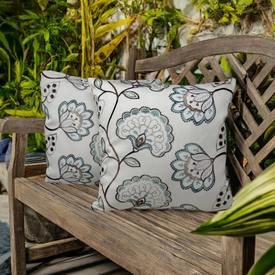 Set di 2 Cuscini Jet-Line 40x40 cm con Motivo Floreale, 100% Poliestere, Beige, per Uso Interno ed Esterno, con Imbottitura, Cuscini Decorativi