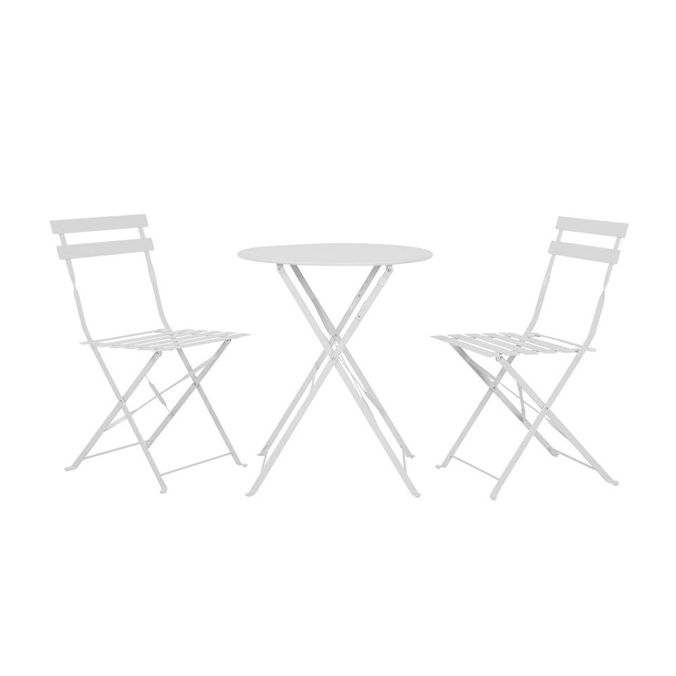 Set di Mobili da Giardino Jet-Line Bistro Design Midcentury, Tavolo in Alluminio Bianco con 2 Sedie Pieghevoli in PE, per Terrazza e Balcone, Portata 100kg