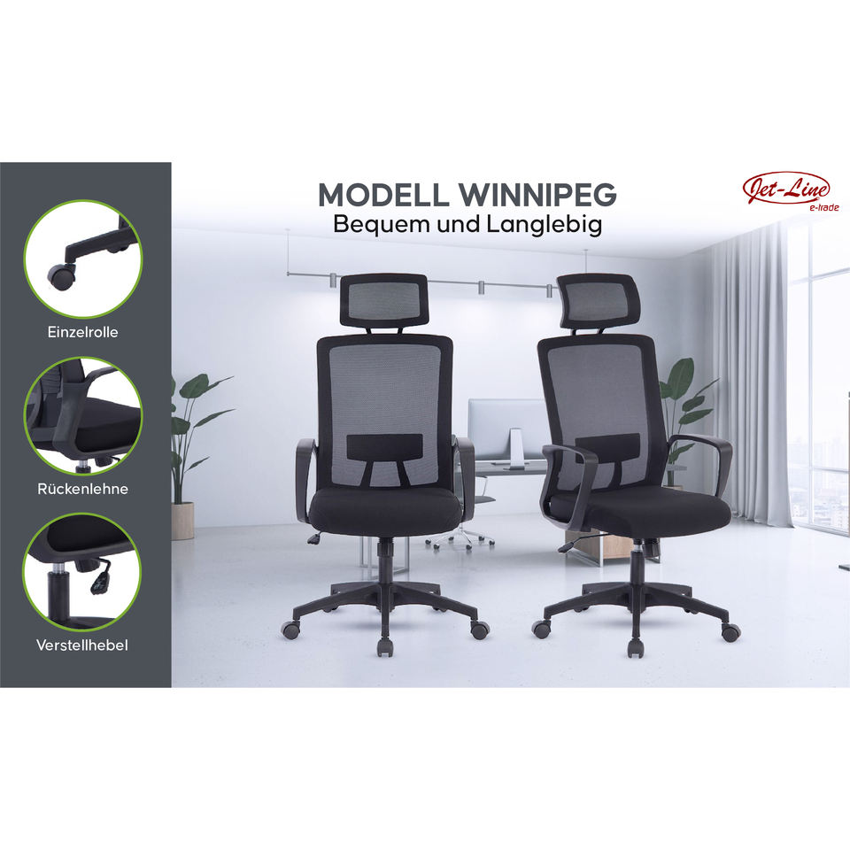 Jet-Line Ergonomic Swivel Armchair Black Office Chair with Contemporary Design Foam and PP Material for Desks 11.4kg
