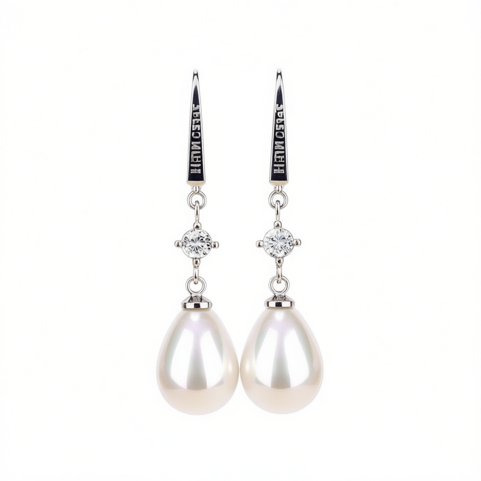 Jewelmer Pearl Drop Earrings 925 Silver White Cultured Pearl AAA Water Drop Shape Rhodium Plated Classic Women Wedding