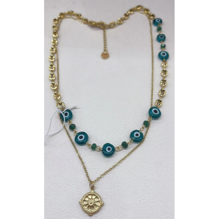 Perlina malocchio collana con bastone di pietra 925 argento Sterling