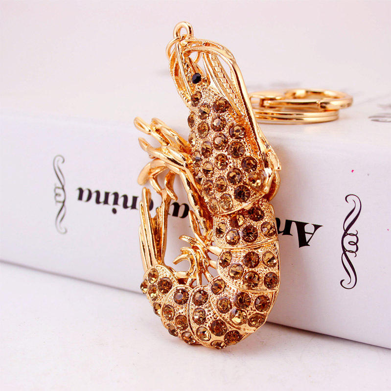Jewelry Promotional Customized Metal Animal Lovely Color Diamond Lobster Key Chain