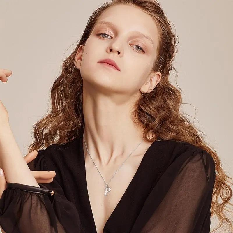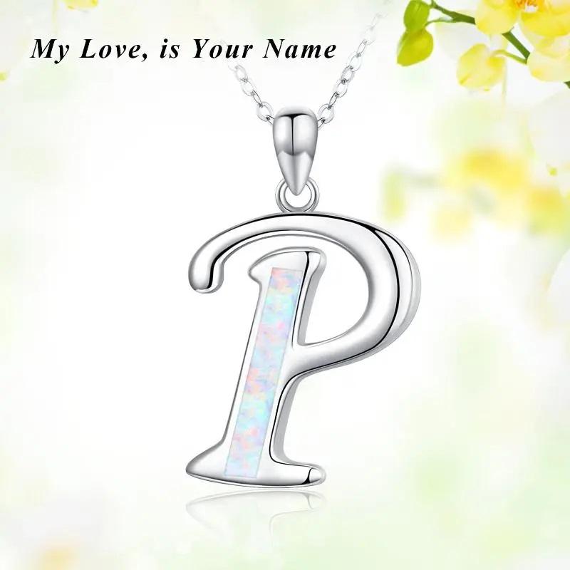 Jewelry Women Unique 925 Sterling Silver Initial P Monogram Letter With Created Opal Alphabet Necklace