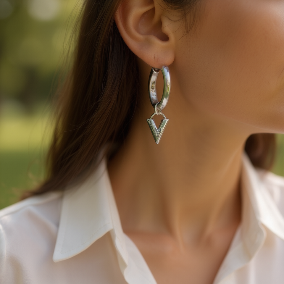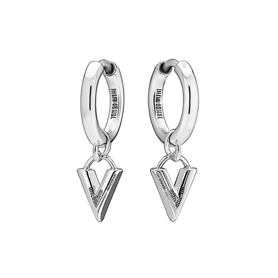 Jhmadashu 925 Silver Hoop Earrings With V Pendant Minimalist Geometric Design Unisex Everyday Wear Jewelry