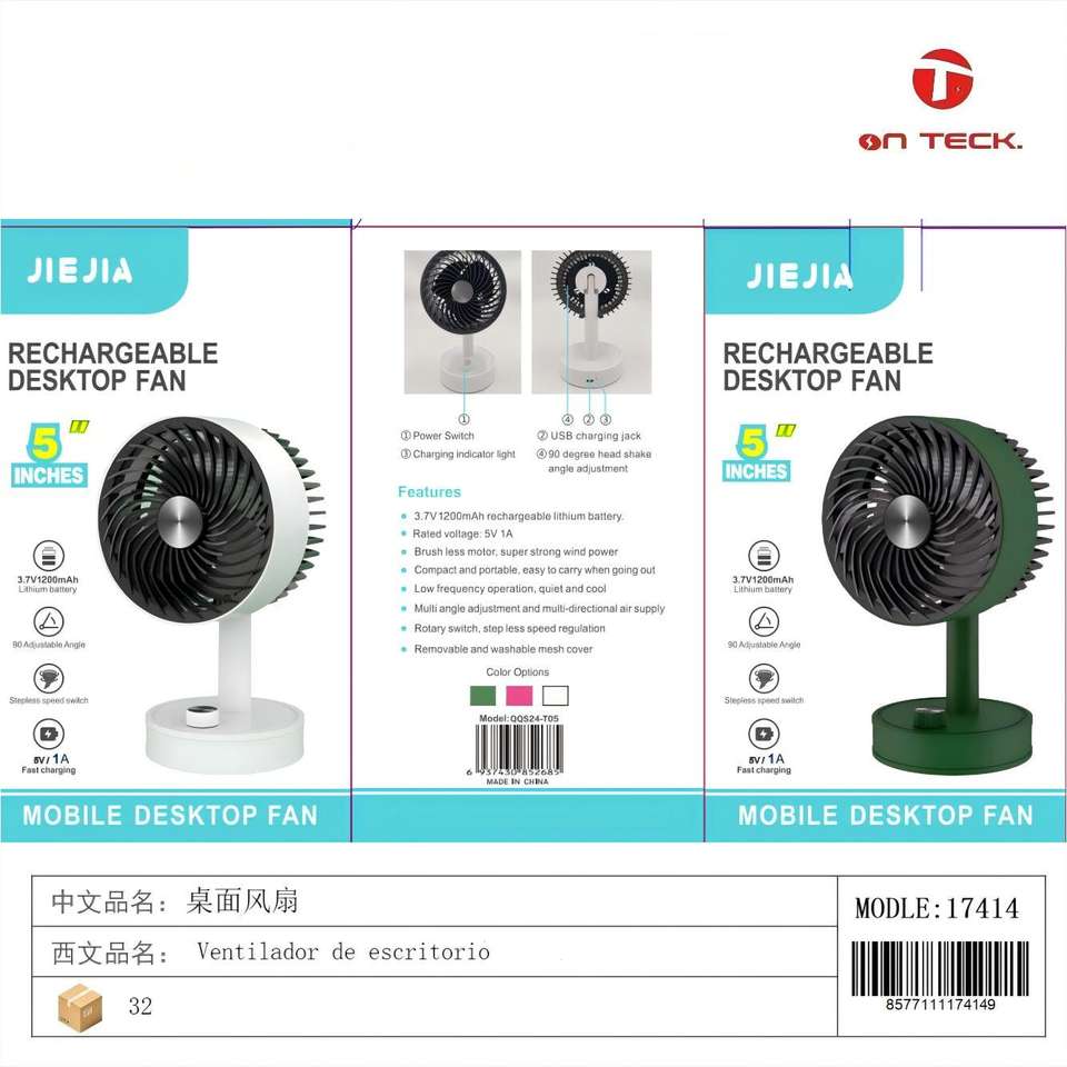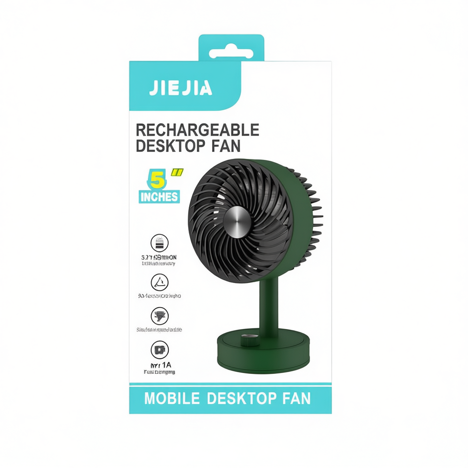 Ventilatore da tavolo ricaricabile Jiejia da 5 pollici, dispositivo di raffreddamento per ufficio alimentato tramite USB