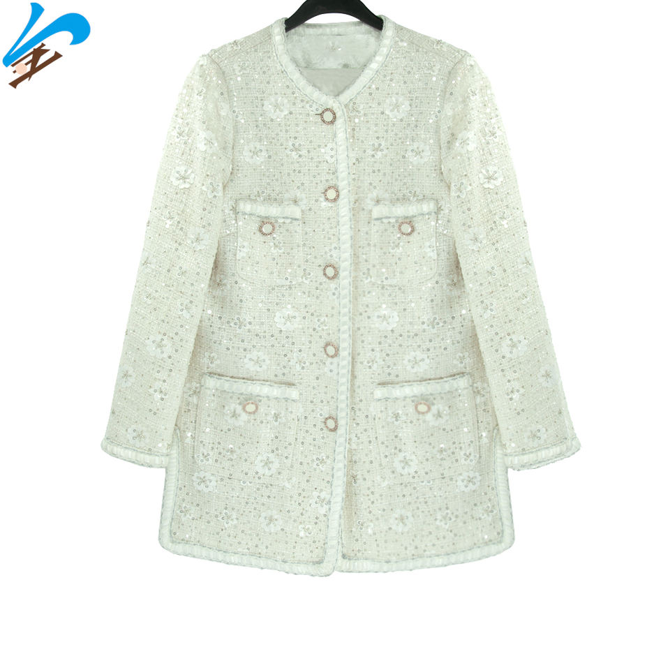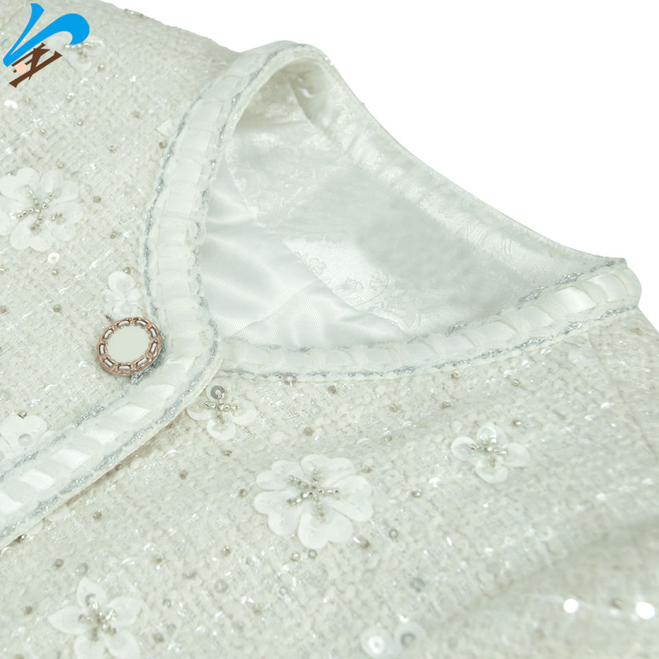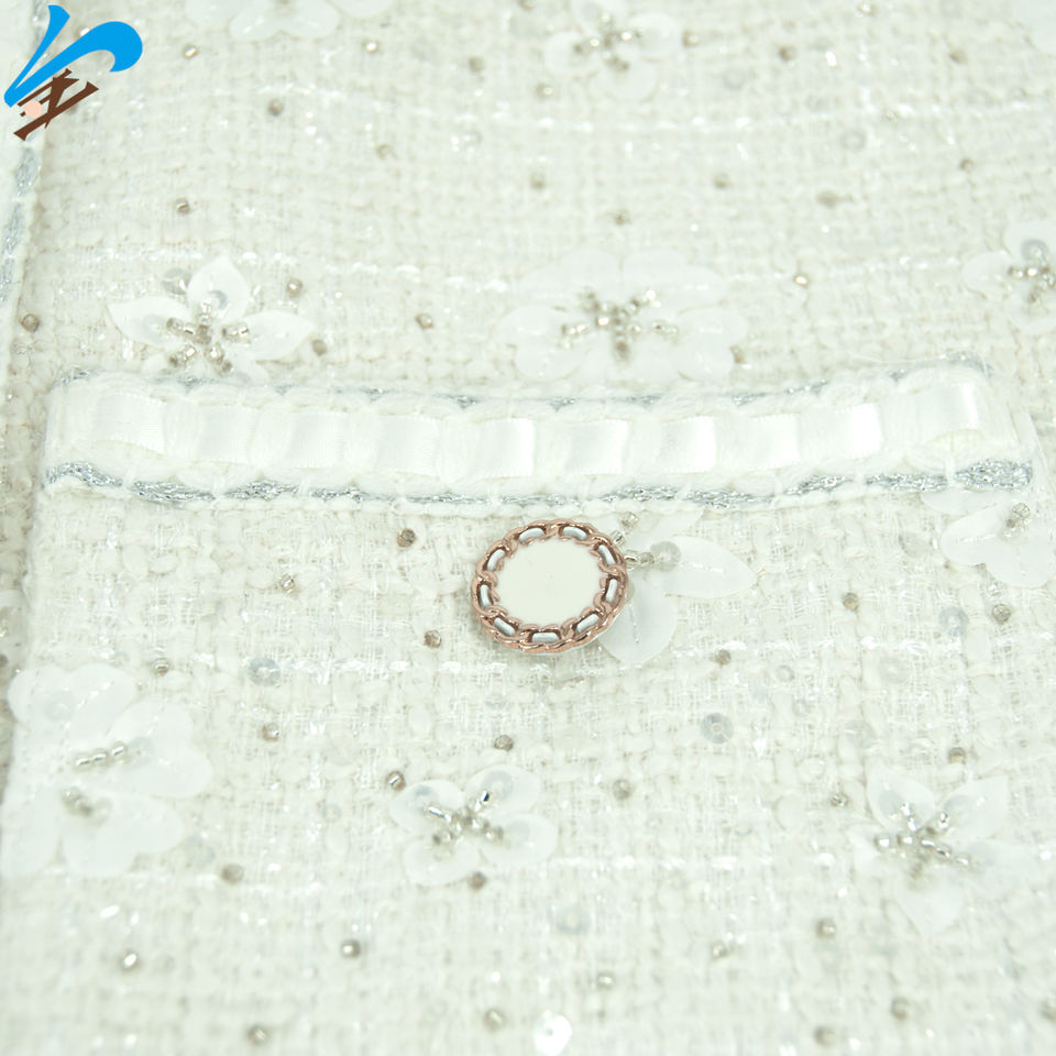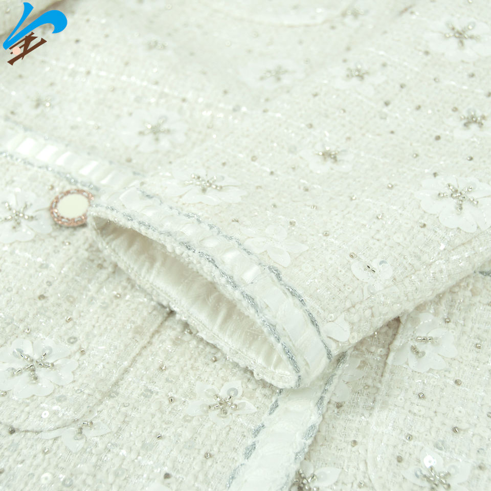 Giacca di Tweed da donna con tema fiocco di neve con perline da uomo Jindian Design classico girocollo