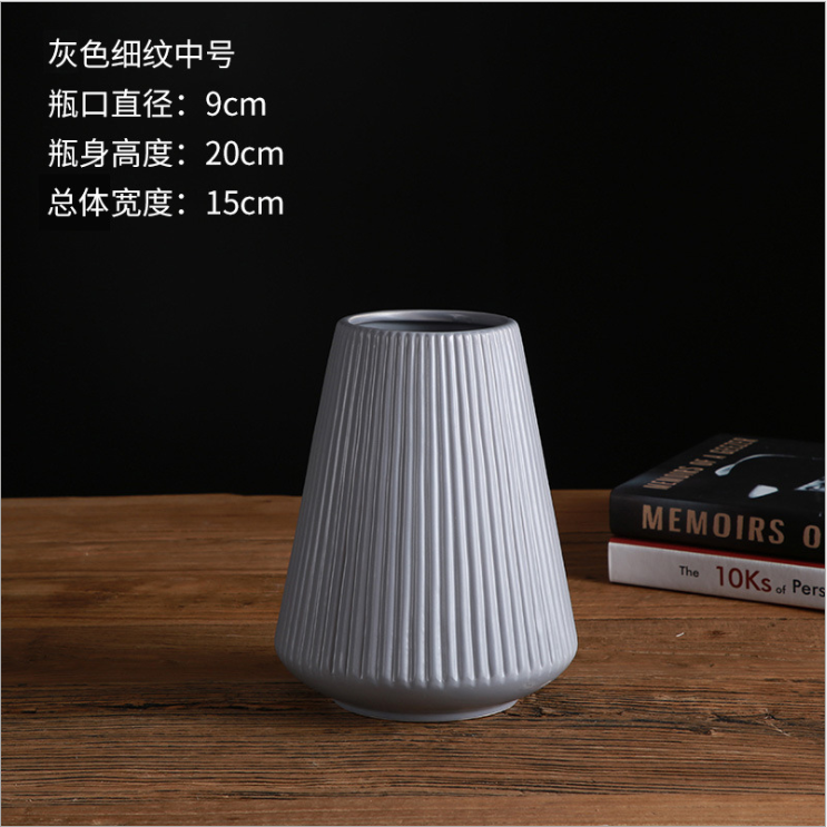 Vaso da Tavolo in Ceramica Scanalata Smaltata Opaca Stile Art Deco JingRui Bianco/Rosa/Grigio Decorazione Casa Vendita Diretta dalla Fabbrica Ingrosso
